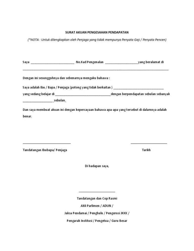 Format contoh surat akuan bekerja yang baik 2019. Dan saya membuat akuan ini. Download surat akuan pengesahan pendapatan. Contoh surat pengesahan pendapatan bekerja sendiri download kumpulan gambar. Contoh surat akuan sumpah pasangan tidak bekerja have a graphic from the othercontoh surat akuan .